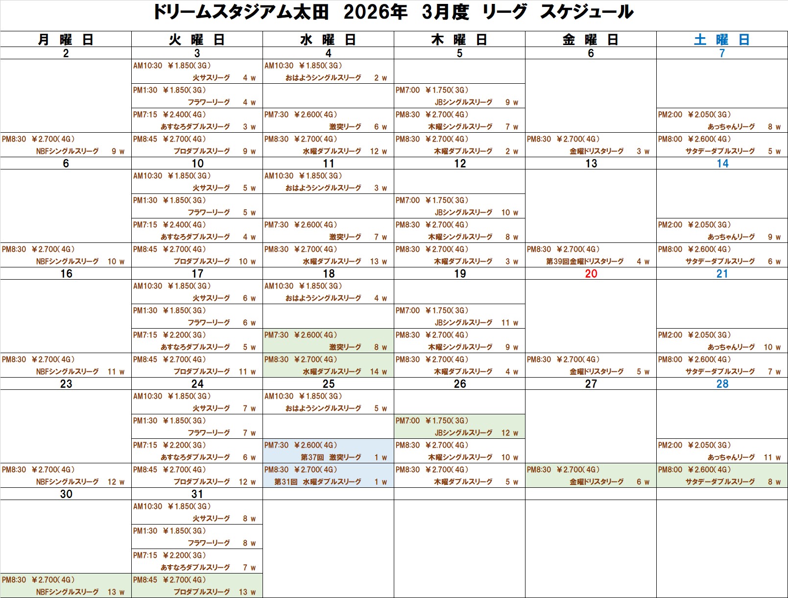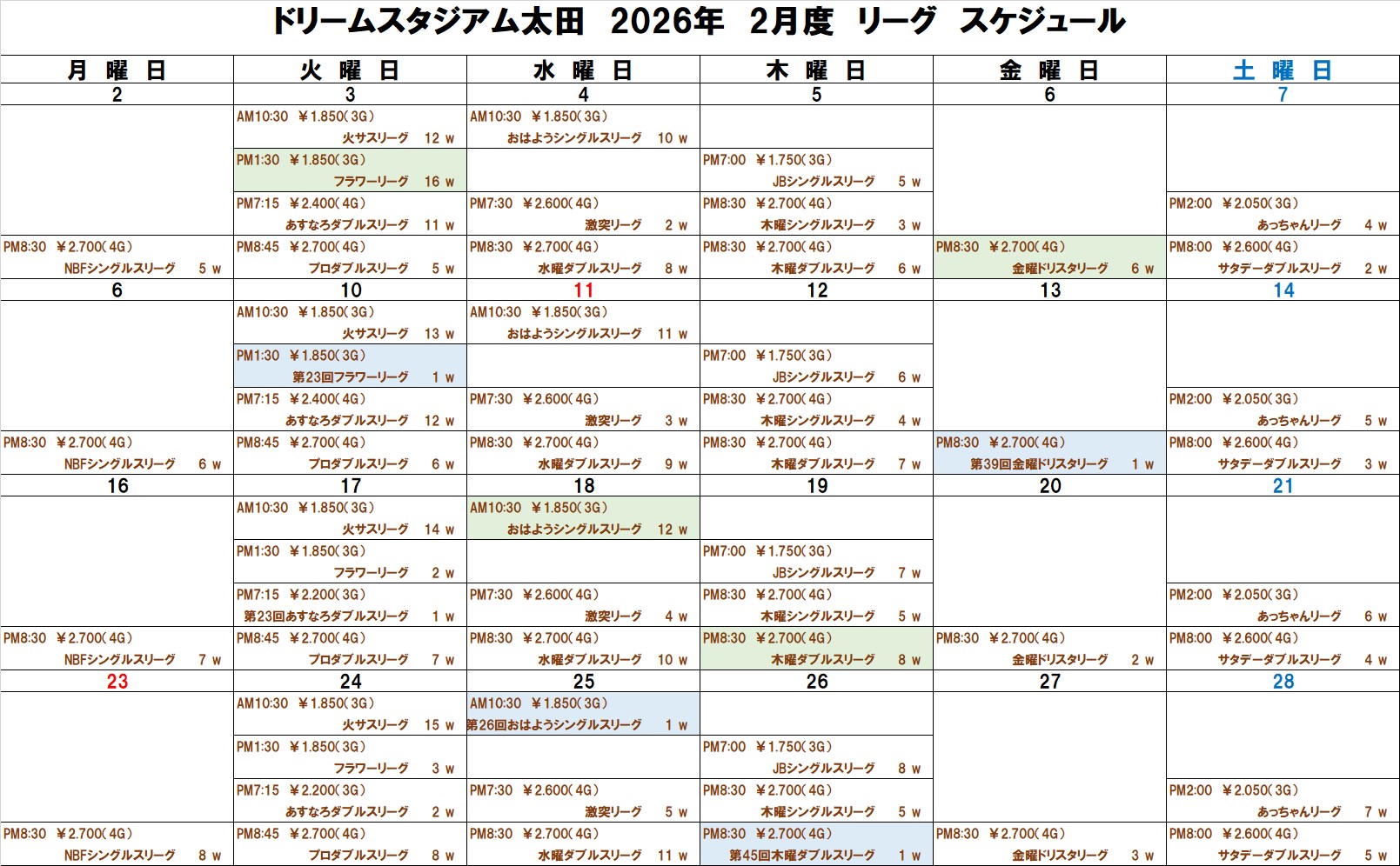 大会・リーグ・レッスン・貸切情報・ハウスコンディション